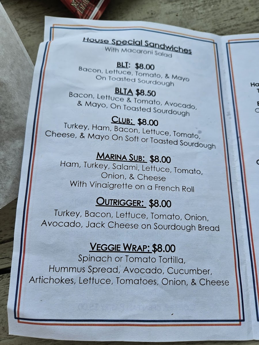 Dock House Grill Menu